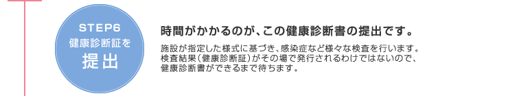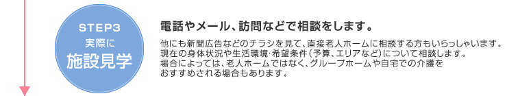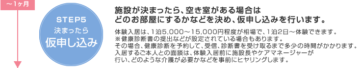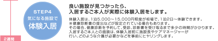 また、最低1泊2日での体験入居や入居時に必要な資金の手配、健康診断書の提出などに時間がかかります。 |